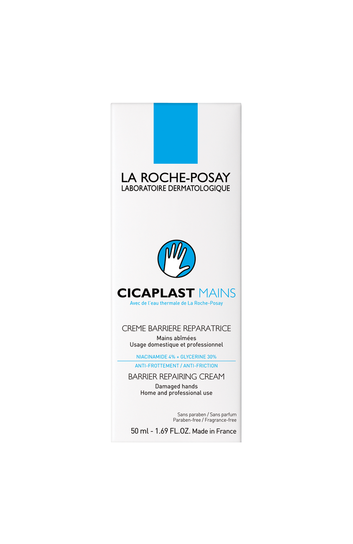 La Roche-Posay Cicaplast Hand Cream is a repairing barrier cream that soothes, protects, and restores the skin barrier for overworked hands, thanks to its formula associating [Niacinamide 4%] and [Glycerin 30%], in an ultra-comfortable texture. Soothes and repairs the skin's protective barrier [Niacenamide 4%]. Protects skin and provides an invisible wash and friction-resistant barrier [Glycerin 30%]. Proven efficacy for professional use. Tolerance tested on sensitive and atopy-prone skin. Fragrance-free.